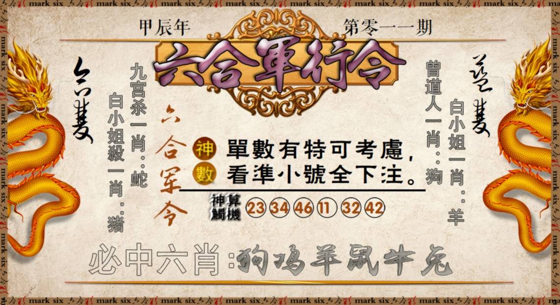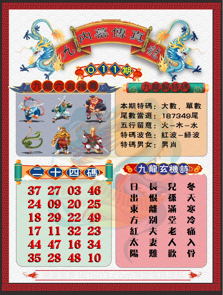 | 011期 | 猴鼠马 | 狗羊 | 马 |