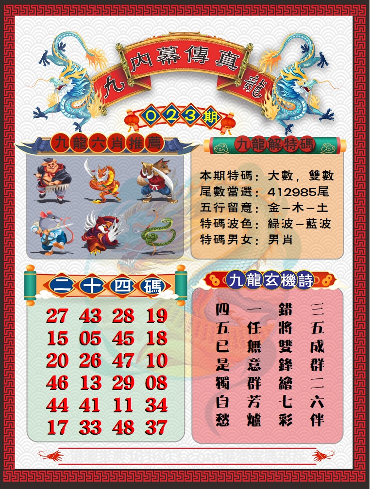 | 023期 | 猪鸡狗 | 蛇狗 | 猴 |