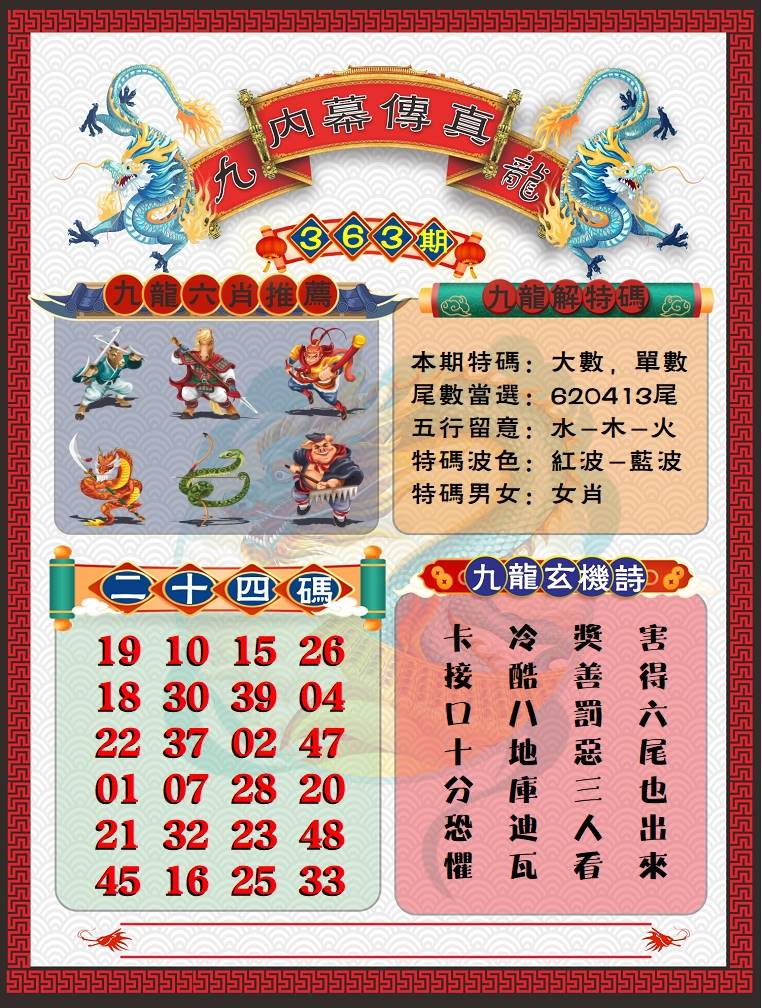 | 363期 | 狗兔猴 | 猴龙 | 猴 |