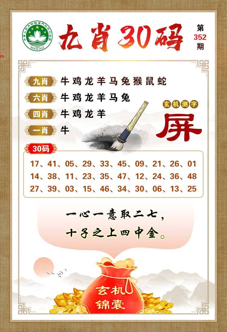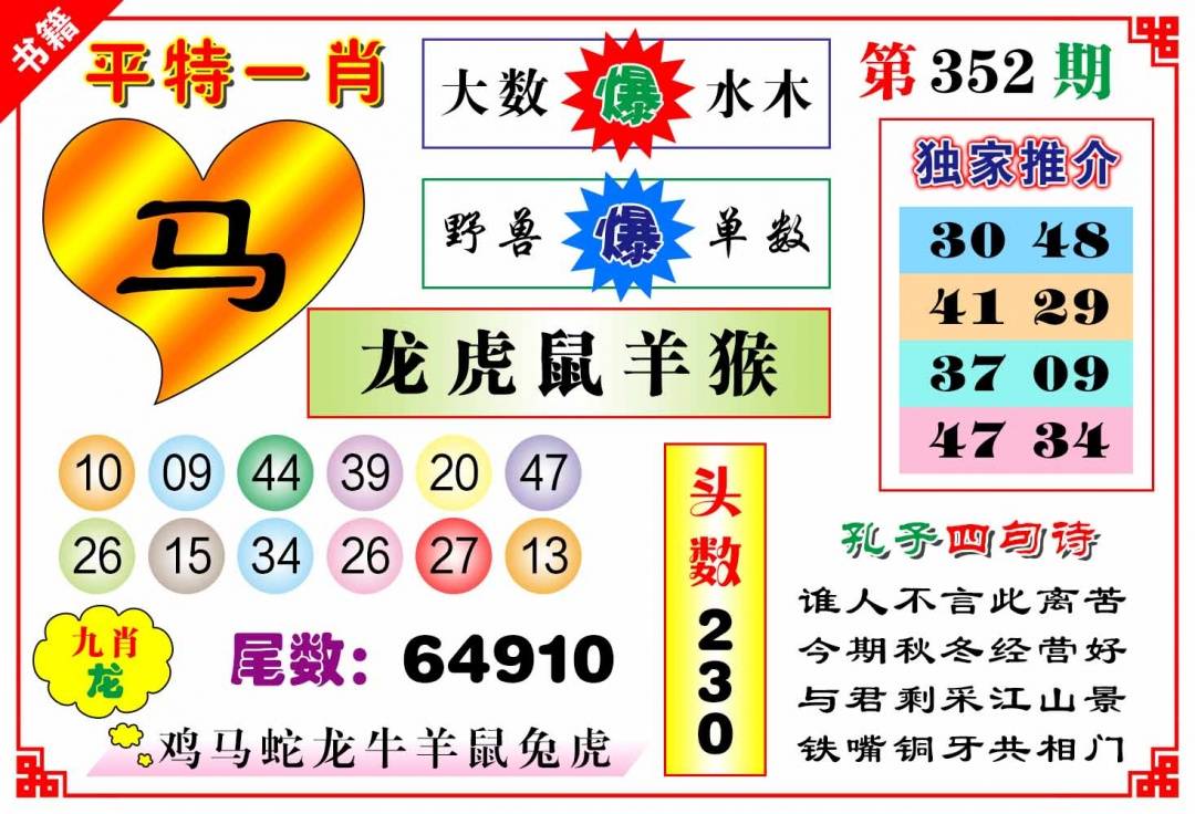 | 352期 | 虎龙兔 | 羊牛 | 鸡 |