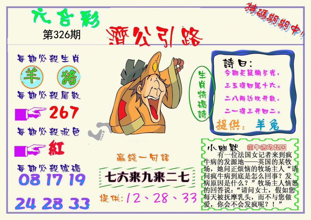 | 326期 | 牛龙猪 | 狗猪 | 羊 |