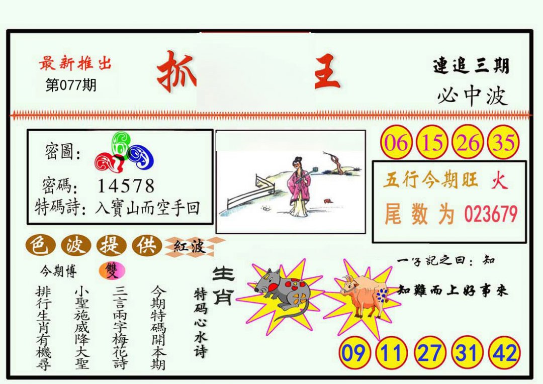 | 077期 | 鸡蛇马 | 猴猪 | 鸡 |