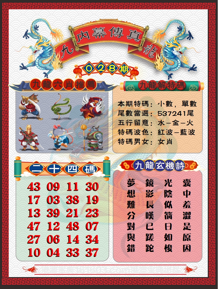 | 028期【鼠牛鸡+土木火】开?00准 |