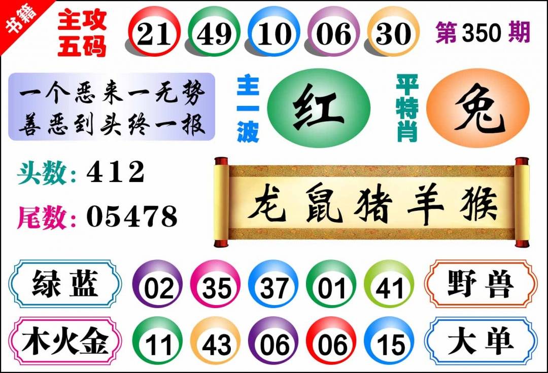 | 350期 | 牛羊猪 | 猴鼠 | 鼠 |