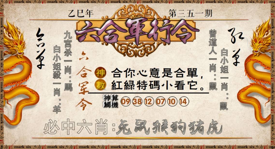 | 351期【猴羊龙+火水木】开?00准 |