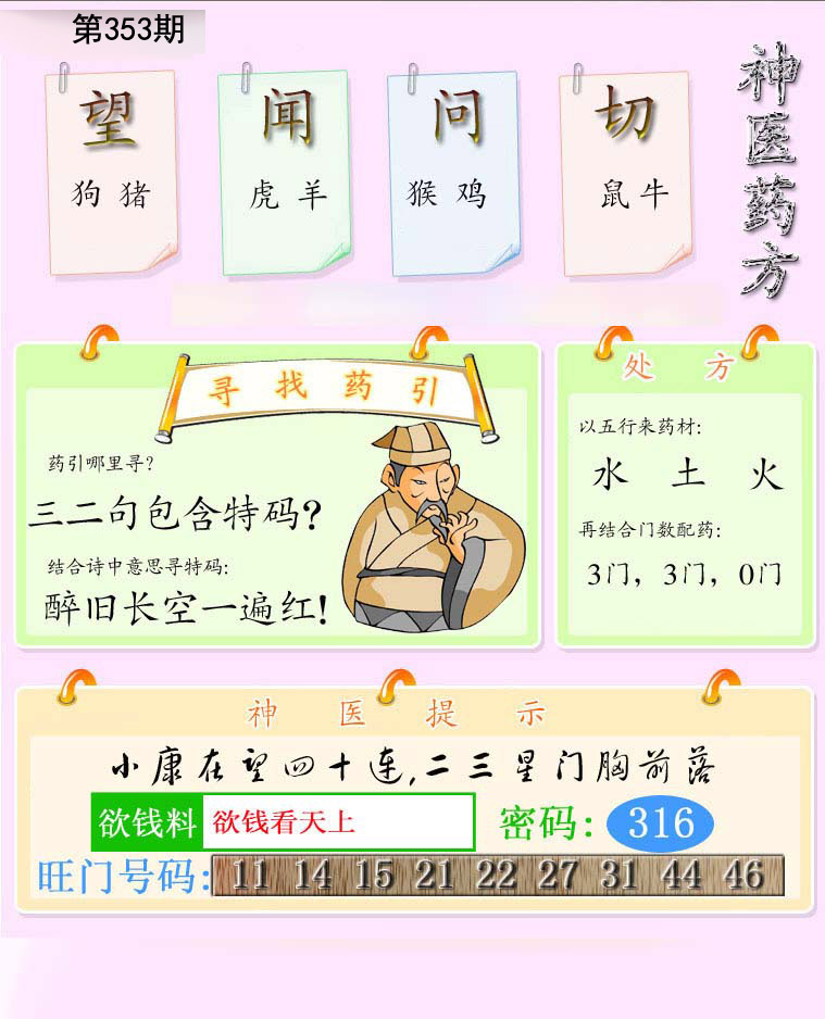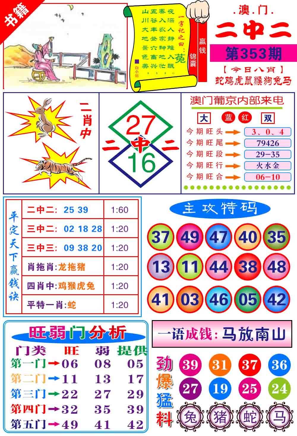 | 353期 | 猪猴虎 | 猴牛 | 虎 |