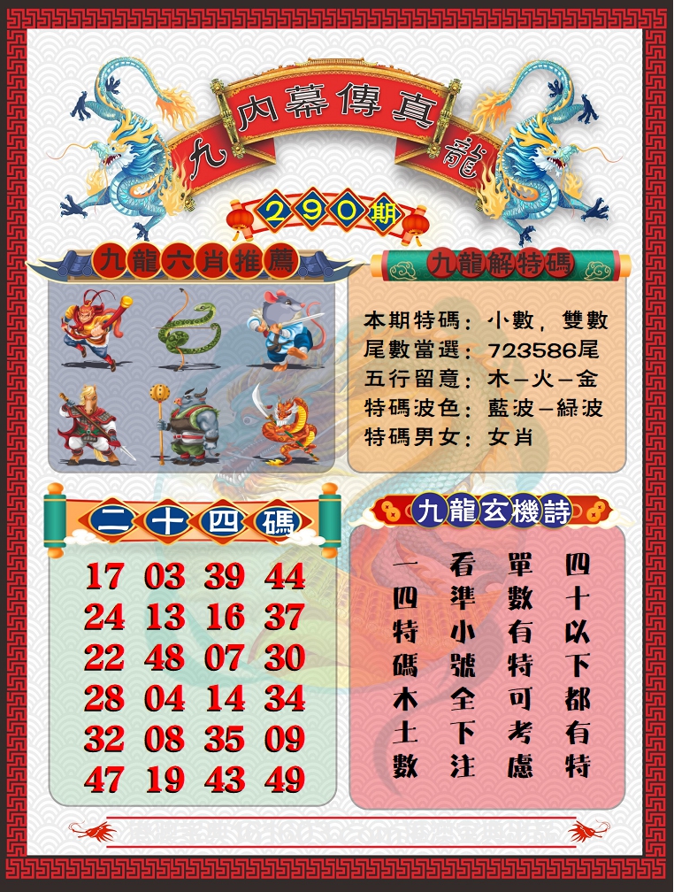 290期 | 鸡龙虎 | 狗羊 | 羊 |