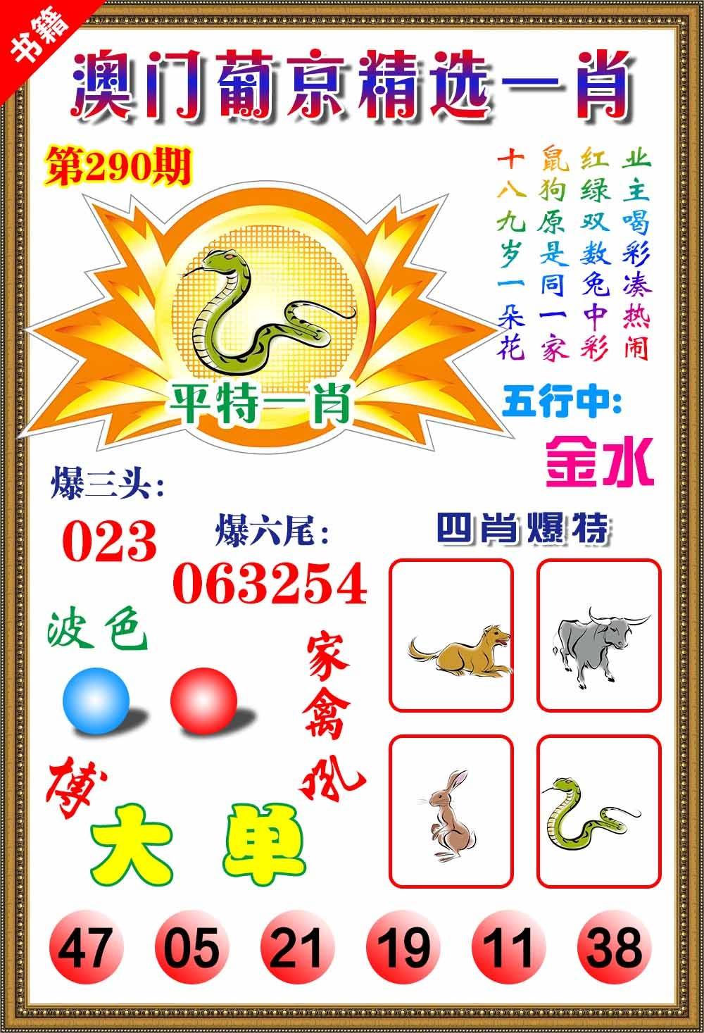 290期【兔蛇鸡+水金木】开?00准 |