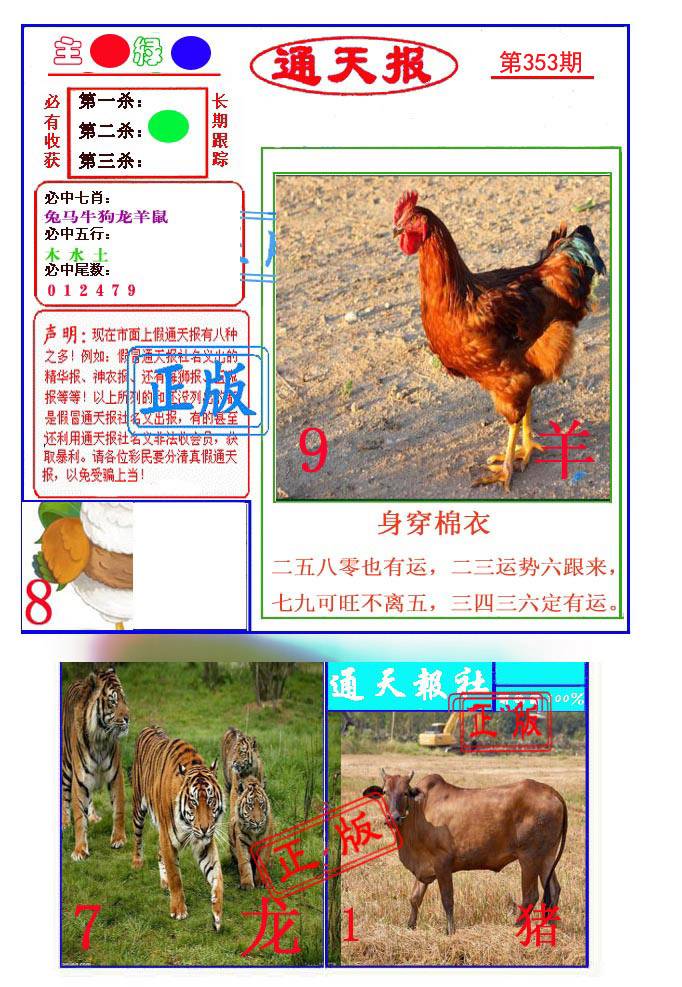 | 352期 | 虎龙兔 | 羊牛 | 鸡 |